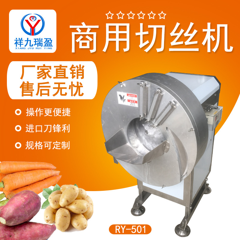 全自動(dòng)切筍機(jī)切刀跟加料斗切面的間隙要嚴(yán)格控制,不宜過大或過小,應(yīng)調(diào)節(jié)在0.05-0.10厘米為妥。小型切筍機(jī)、切酸筍機(jī)間隙過小刀刃跟料斗相碰,這時(shí)松動(dòng)料斗下的瑣緊螺釘即可。若間隙太大,以同樣辦法調(diào)節(jié)向內(nèi)推移則可。全自動(dòng)切筍機(jī)、切干筍機(jī)運(yùn)行操作時(shí),切不可將手伸進(jìn)料斗內(nèi),以防切傷手指。將竹筍或蕃薯、紅蘿卜、瓜類切片或切絲處理。