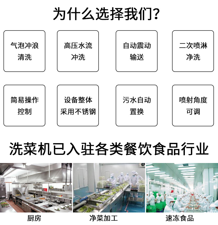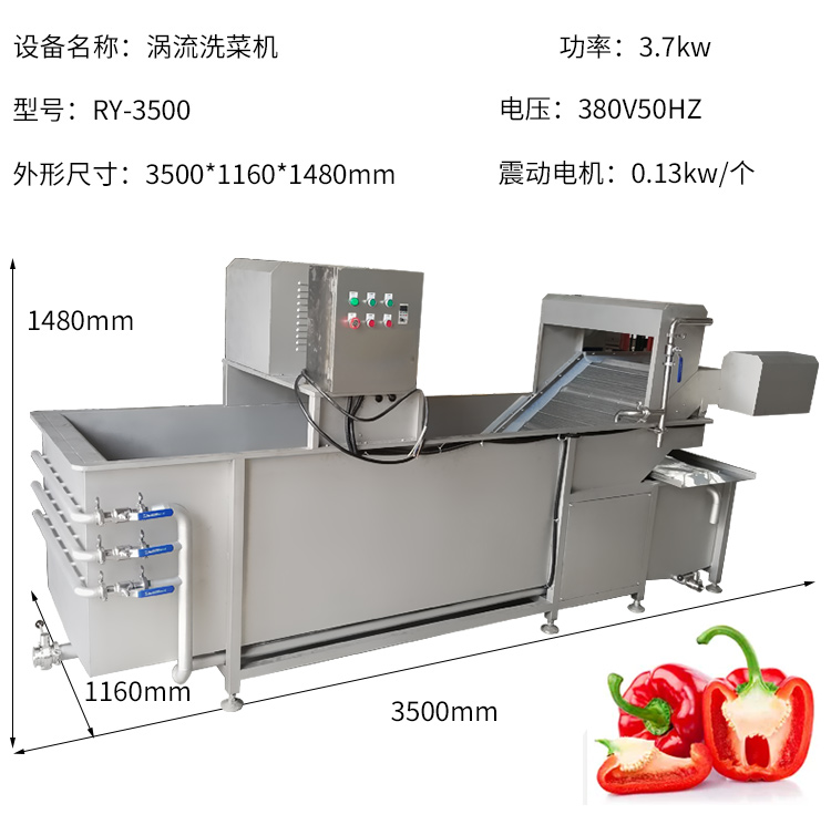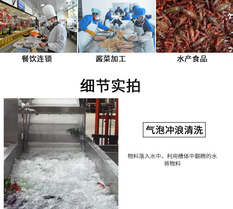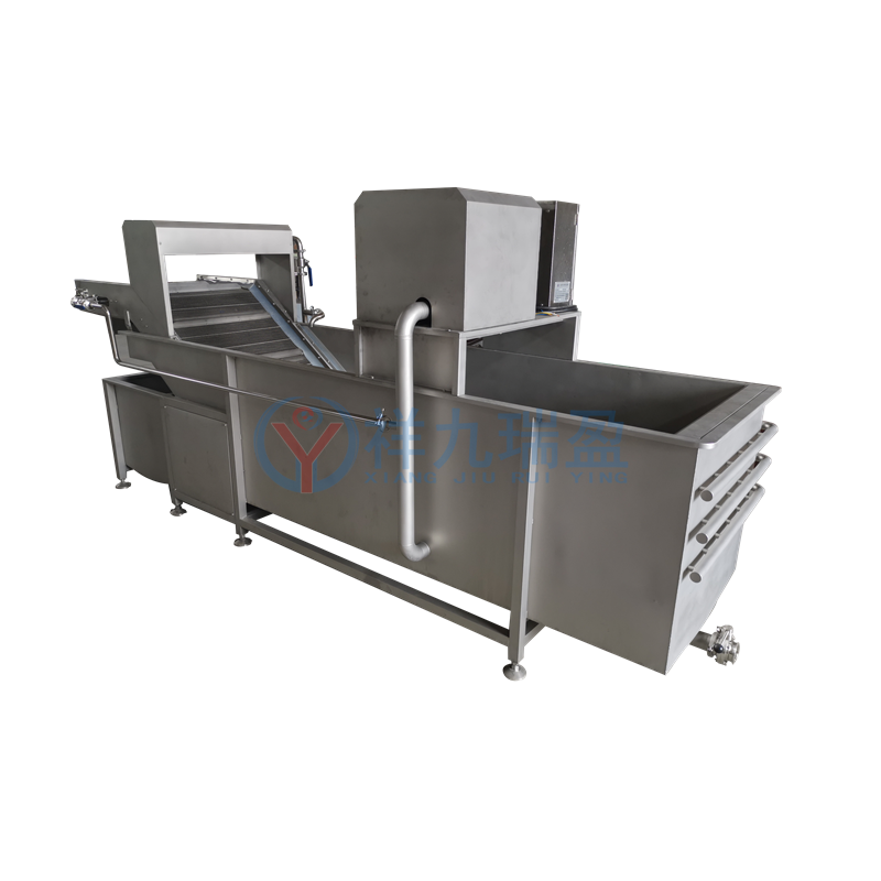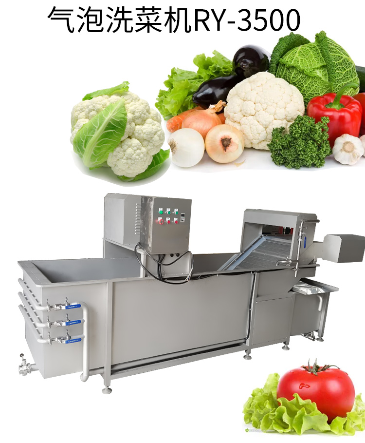 工作過程中,進水管和噴淋水管始終供水,使水箱內(nèi)的污水逐步被替換。祥九瑞盈氣泡洗菜機RY-3500 適用于大型的凈菜加工。